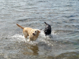 Vi har varit på besök på Orust och igår fick hundarna en chans att bada. Det var två öyckliga hundar som skuttade runt i vattnet. Zack fick sen bära med sig pinnen hela vägen hem igen. Mycket fint tyckte han! Tim ägnade sig mest åt att försöka rädda tången, den kunde ju drunkna!