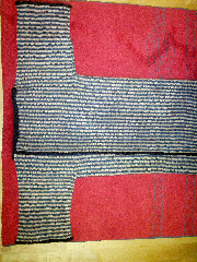 En enkel trekants-sjal stickad i Ateljé Norrgårdens Leicester Lyster. Ett helt nystan av det röda gick åt, har knappt en meter kvar och ungefär halva av det mullvadsfärgade.