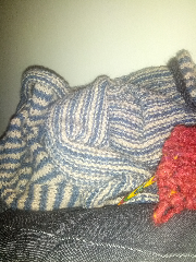 Idag avslutade jag en tvåändsstickad mudd. Imorgon har jag möjligheten att påbörja den andra.