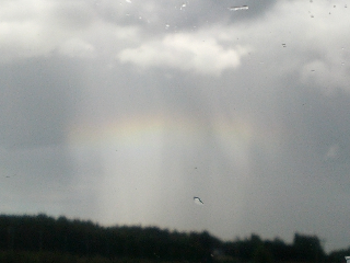 Ja, det såg ut som en rund regnbåge där uppe bland molnen. Inte den bästa bilden, den är tagen med mobilen ifrån bilen strax utanför Kumla.