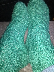 Har gett mig på något väldigt nytt för min del. Stickar två strumpor på samma gång med flätor på dem och på magic-loop. Det går lite segt just nu... men när jag är färdig är jag också klar med båda samtidigt, inte illa det!
